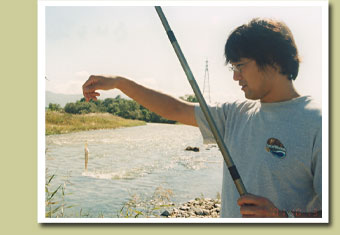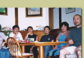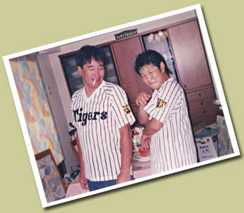 ◆かなり以前のことですが、お客さんのところに止まりに行った珍しいケースです。名古屋市の小林節子さん宅にて山田さん・村田さん・舞香チャン・ショウヘイ です。カープファンですが強制的にタイガースのユニフォームを着せられているのが良い。 |